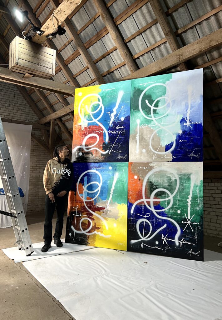 Gallery FacebookInstagram Exhibition- Circle of Life – at REvent – Hamburg 2025 Elements- lost and found – Exhibition & Performance- Wendland 2024 Elements- lost and found – 2024 Dickies collaboration-100 Anniversary -Time flight – 2022 Collaboration x stagetwo, the largest pan-European competition for the best startups spinning out of leading universities. live painting 2022 Berlin Future Village 22 – Documenta 15 Kassel 2022 Day and Night Mural, Kassel 2021 „Picture Me Different“ by Janto Koite, Performance-Exhibition, Pop Kultur Festival Berlin 2020